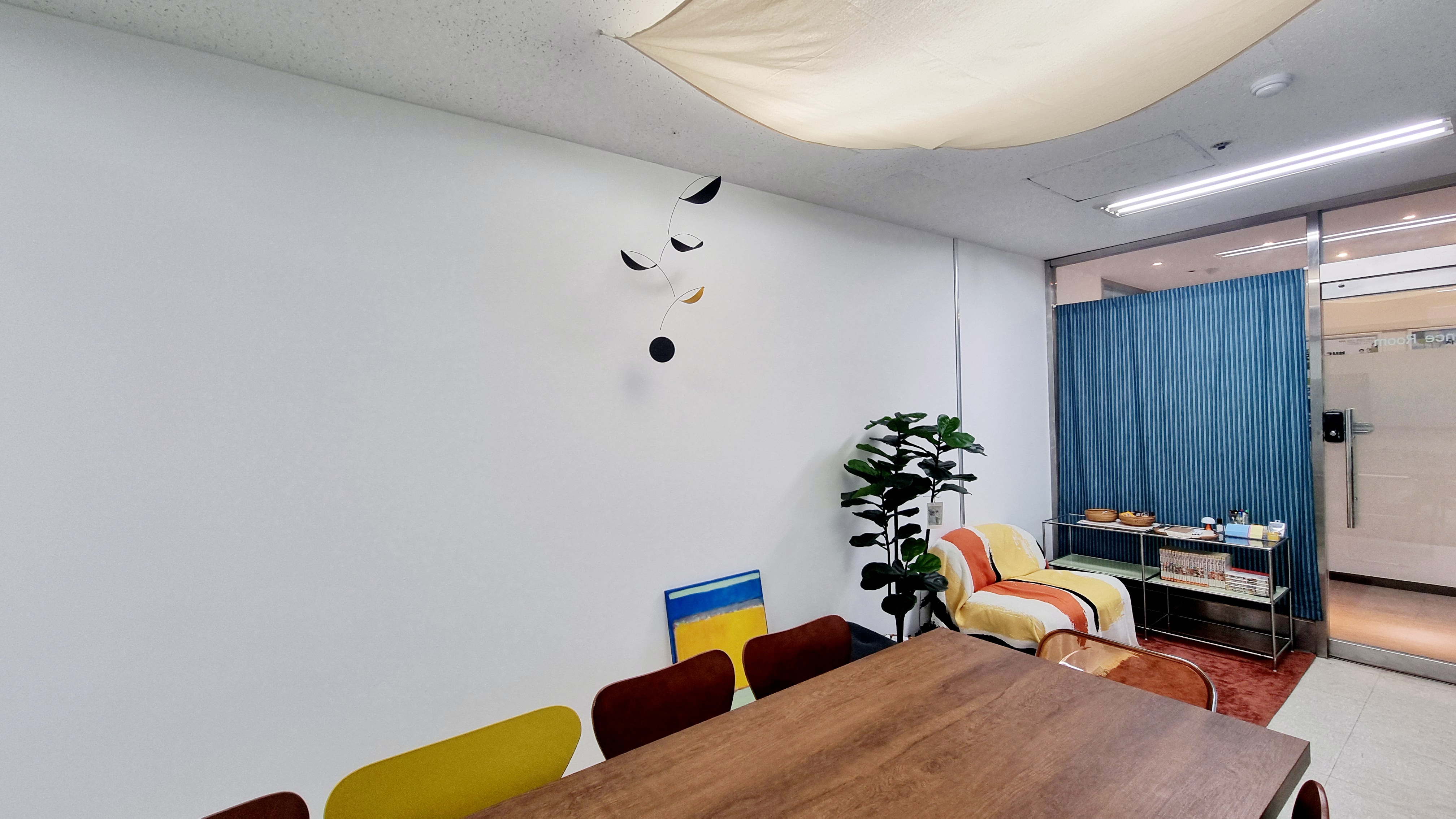 - 시설: 10인 테이블 및 의자, 대형 화이트보드, 대형 모니터, 냉난방기, 공기청정기, 서큘레이터, 소파, 포디움, 와이파이, 커피와 차, 환대의 간식, 추억의 오락기와 만화책